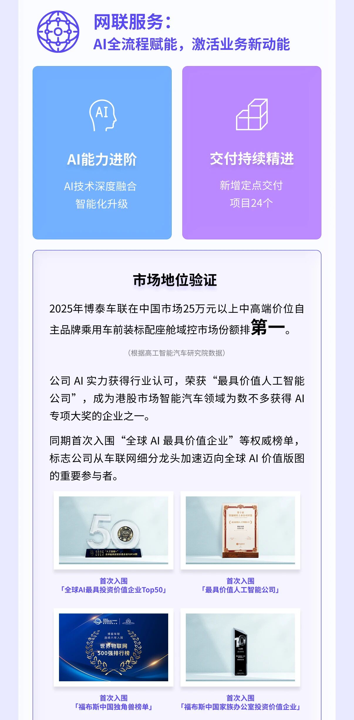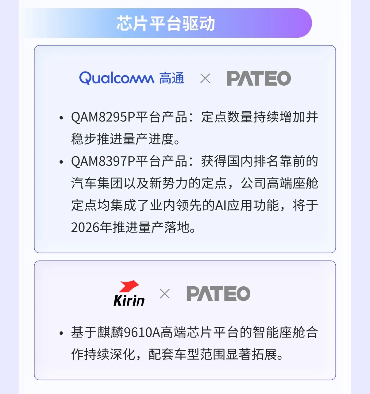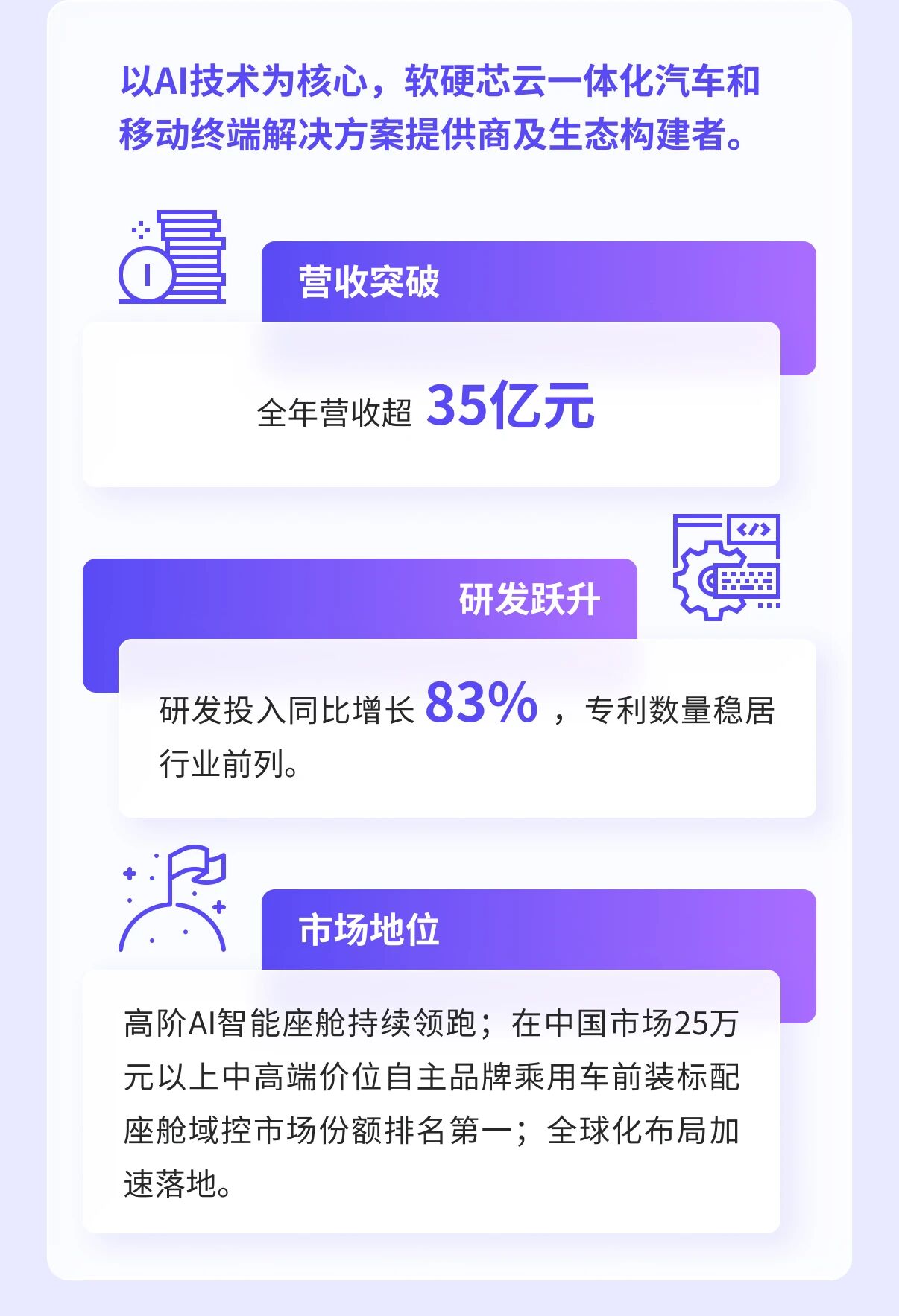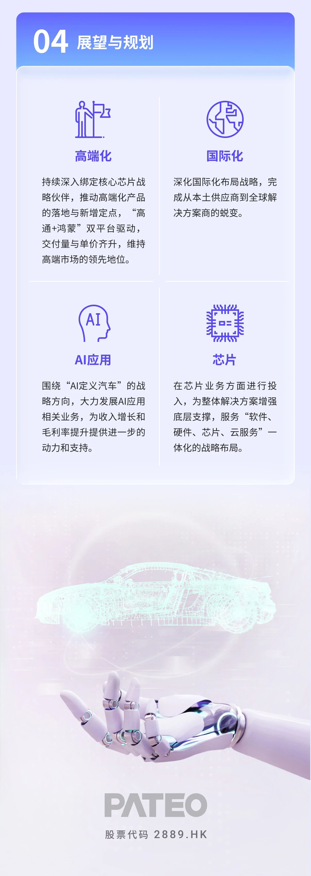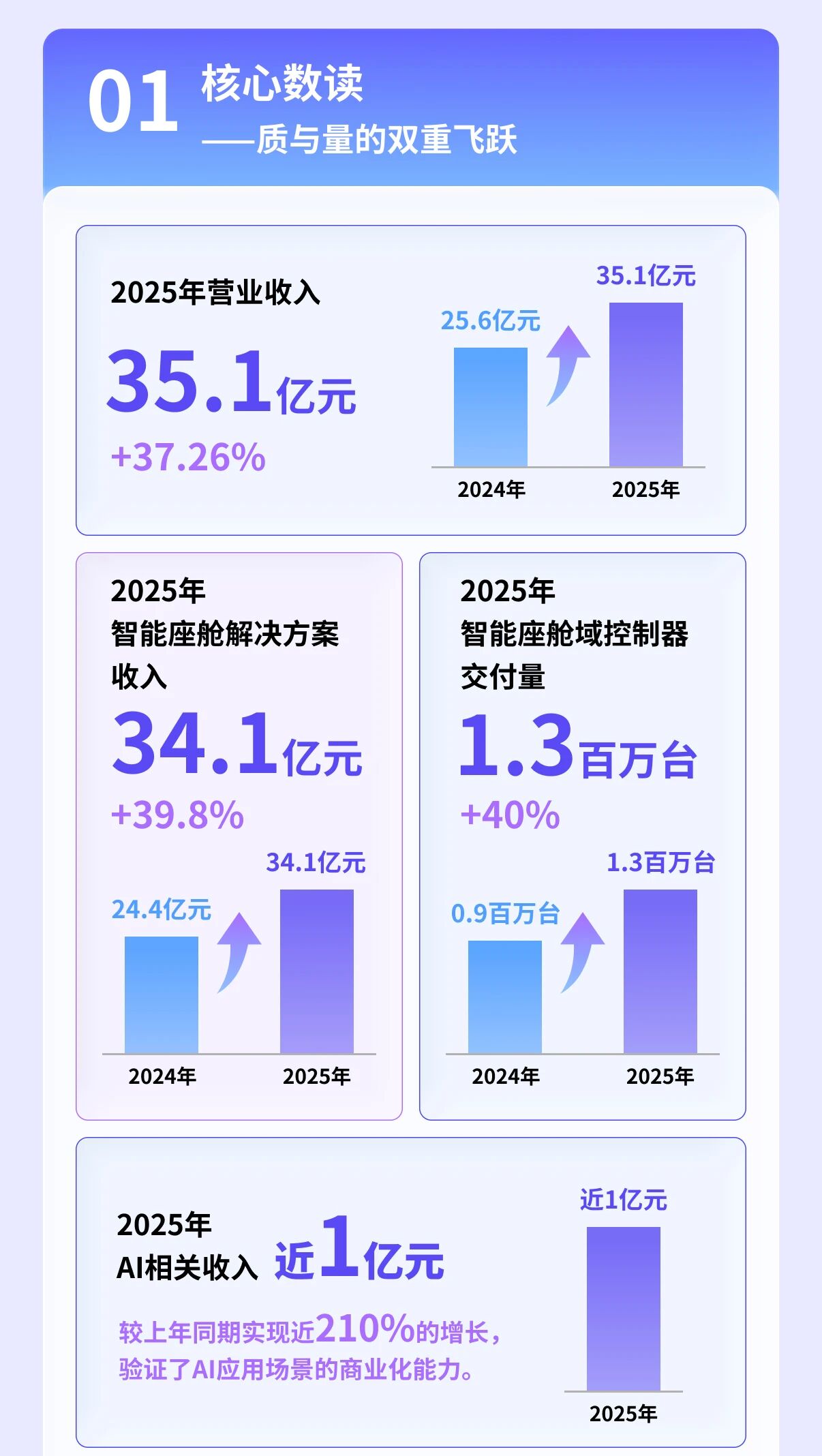 一图读懂博泰车联2025年全年业绩 作者: 爱集微 2小时前 相关舆情 AI解读 生成海报 来源:PATEO博泰车联 #博泰车联# 评论 收藏 点赞 988 责编: 爱集微 来源:PATEO博泰车联 #博泰车联# 收藏 点赞 分享至: 微信扫一扫分享 THE END 相关推荐 博泰车联获2026 IC风云榜“年度AI技术突破奖”,打造智能座舱新标杆 引领AI智能座舱技术革新,博泰车联竞逐AI技术突破奖 【IPO价值观】博泰车联网发明专利数量居首,核心技术曾被专利局判决无效 【IPO价值观】业绩提升靠股东,博泰车联网出货量暴增仍难扭亏 博泰车联网“用于电子设备的导航图形用户界面”专利获授权 博泰车联网获15亿元股权融资 +关注 爱集微 微信: 邮箱:laoyaoba@gmail.com 12.9w文章总数 12012.5w总浏览量 最近发布 联想开天携手沐创共建联合实验室 16分钟前 集微咨询:中国车规级电池管理系统模拟前端BMS AFE芯片白皮书 39分钟前 北理工团队在钠硫电池高效硫载体研究中取得重要进展 55分钟前 安森美发布中国战略,推动创新,加速全球增长 1小时前 荣膺“AI先锋”!爱集微AI平台入选上海市优秀案例 1小时前 获取更多内容 最新资讯 联想开天携手沐创共建联合实验室 16分钟前 锐明技术2025年实现营收24.77亿元,净利润同比增长31.95% 28分钟前 上市首份年报亮眼!壁仞科技2025年收入破10亿,存货规模暴增至9.49亿元 48分钟前 三维集成浪潮下电镀价值重估,盛美上海构筑全链条技术壁垒 2小时前 东方晶源亮相SEMICON China 2026:软硬件全面突破筑牢产业高质量发展根基 6小时前 集微咨询:中国车规级电池管理系统模拟前端BMS AFE芯片白皮书 39分钟前