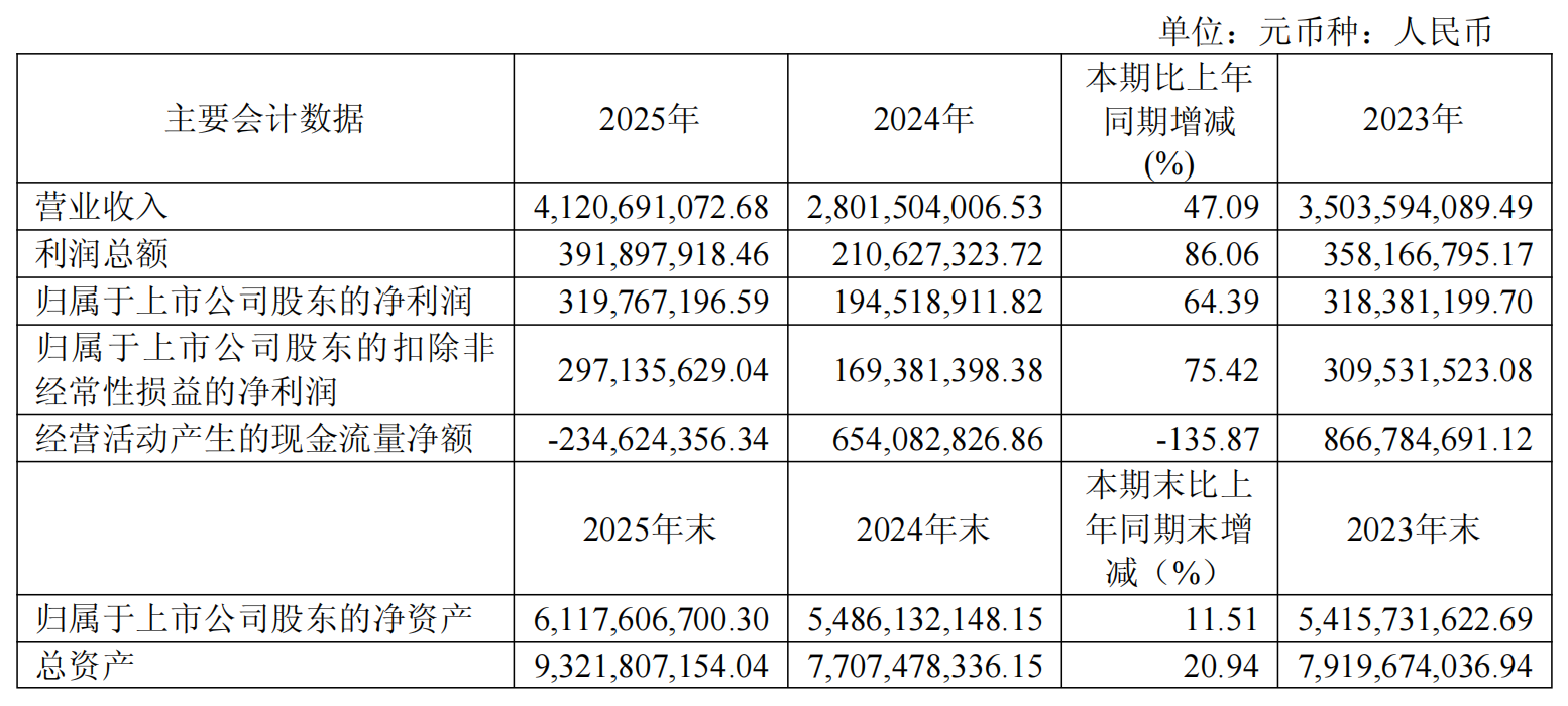 3月31日,火炬电子发布2025年年度报告。报告显示,公司全年实现营业收入41.21亿元,同比增长47.09%;归属于上市公司股东的净利润3.2亿元,同比增长64.39%,基本每股收益0.68元。公司拟向全体股东每10股派发现金红利0.8元(含税),合计派现约3784.98万元。