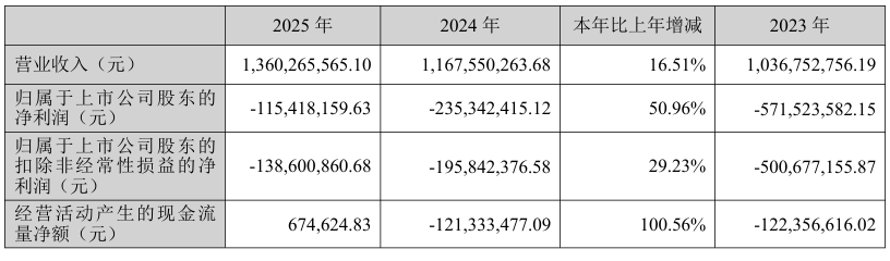 3月31日,国民技术披露2025年年度报告。年报数据显示,2025年公司实现营业收入13.6亿元,较上年同期增长16.51%;归属于上市公司股东的净利润为-1.15亿元,较上年同期-2.35亿元减亏50.96%;扣除非经常性损益后的净利润为-1.39亿元,同比减亏29.23%。经营活动产生的现金流量净额67.46万元,同比大幅转正,增长100.56%,现金流状况得到明显改善。