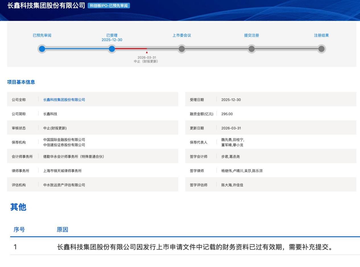 存储一哥长鑫科技等27家IPO企业财务更新“时间窗口”:3月末为何成关键节点?