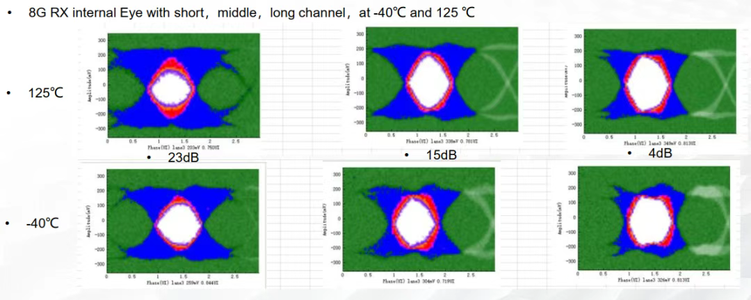 图3:PCIE3 PHY在长,中,短信道下,高低温的接收端内部眼图测试结果