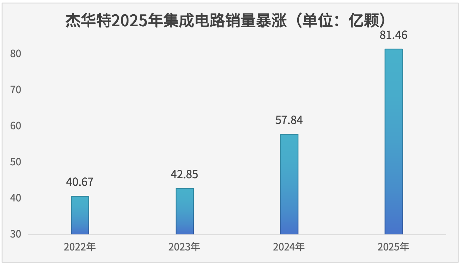 营收大增的背后,产品销量同步创下历史新高。数据显示,杰华特2025年全年集成电路销量达到81.46亿颗,同比增长40.84%,产品市场渗透率与客户覆盖广度持续提升,规模效应逐步显现。