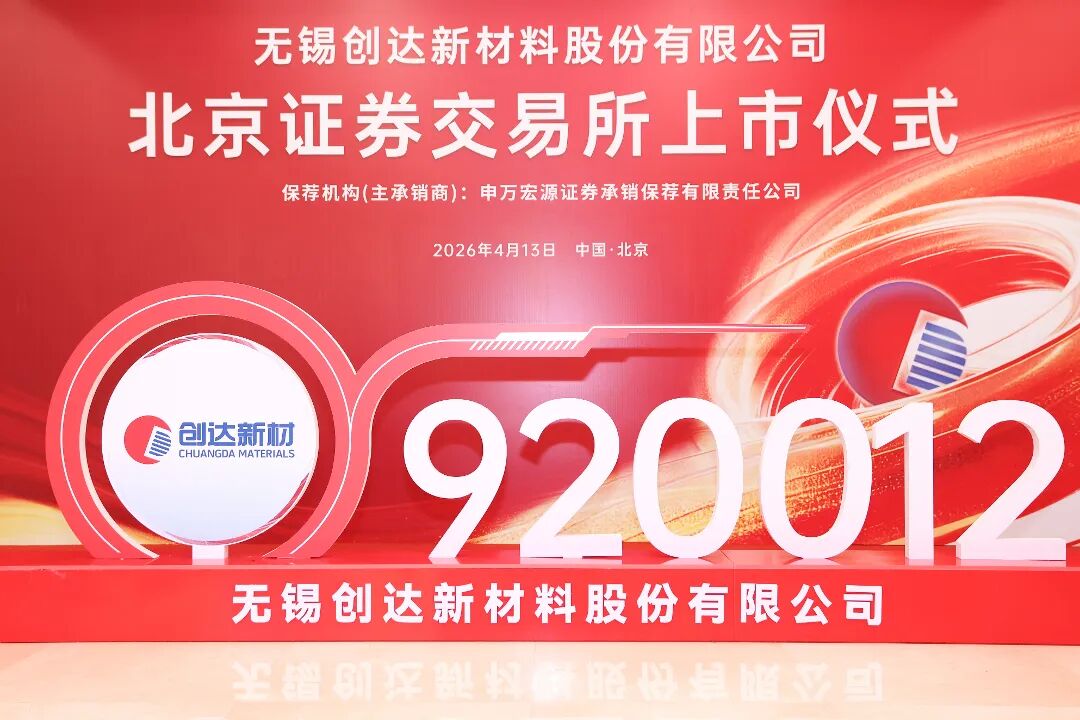 4月13日,无锡创达新材料股份有限公司(股票简称:创达新材,股票证券代码:920012)在北京证券交易所挂牌上市。