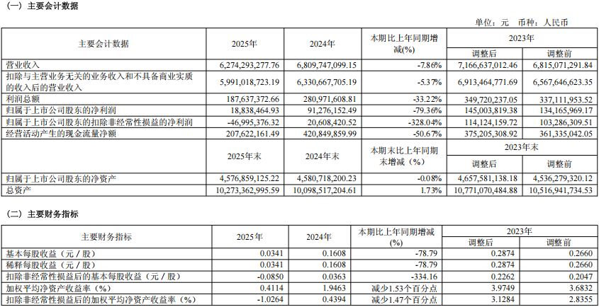 东风科技2025年实现营收62.74亿元,净利润同比下降79.36%