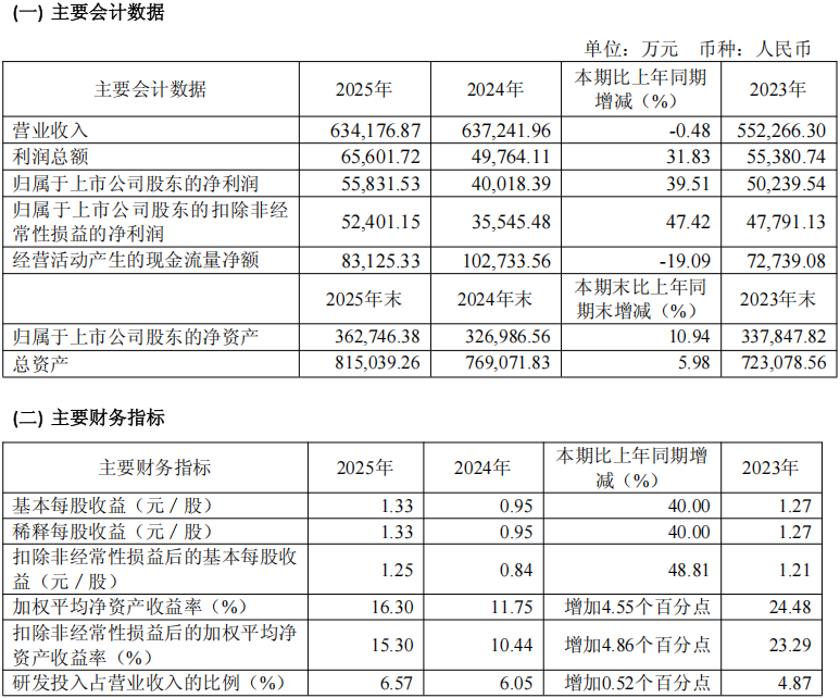 4月15日,威迈斯发布2025年年度报告。报告显示,2025年度公司实现营业收入634,176.87万元,较上年同期基本持平;归属于上市公司股东的净利润为55,831.53万元,较上年同期增长39.51%;归属于上市公司股东的扣除非经常性损益的净利润为52,401.15万元,同比增长47.42%。经营活动产生的现金流净额为83,125.33万元,较上年同期下降19.09%。