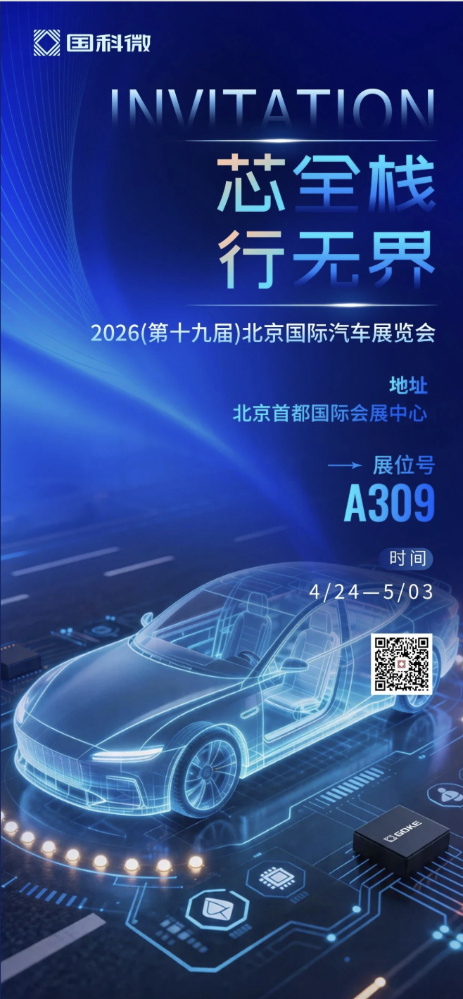 2026北京国际车展,国科微将首次展出车规级MCU及电源管理芯片,协同车载AI芯片构成全栈智能车规产品矩阵。以全场景、全生态布局汽车电子,突破出行边界,定义智能出行新体验