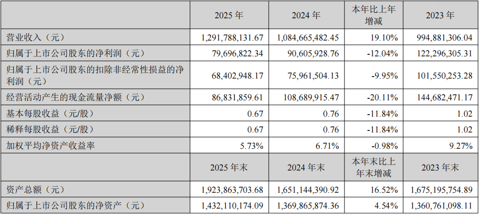 4月17日,秋田微发布2025年年度报告。报告显示,2025年度公司实现营业收入129,178.81万元,较上年同期增长19.1%;归属于上市公司股东的净利润为7,969.68万元,较上年同期下降12.04%;归属于上市公司股东的扣除非经常性损益的净利润为6,840.29万元,较上年同期下降9.95%。经营活动产生的现金流净额为8,683.19万元,较上年同期下降20.11%。