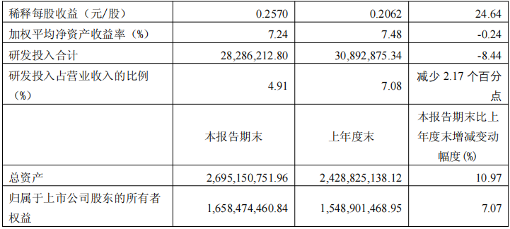 截至2026年3月31日,公司总资产为26.95亿元,较上年末增长10.97%;归属于上市公司股东的所有者权益为16.58亿元,较上年末增长7.07%。