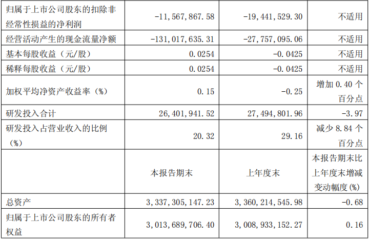 截至报告期末,公司总资产为33.6亿元,较期初增长1.76%;归属于上市公司股东的净资产为30.09亿元,较期初增长0.77%。