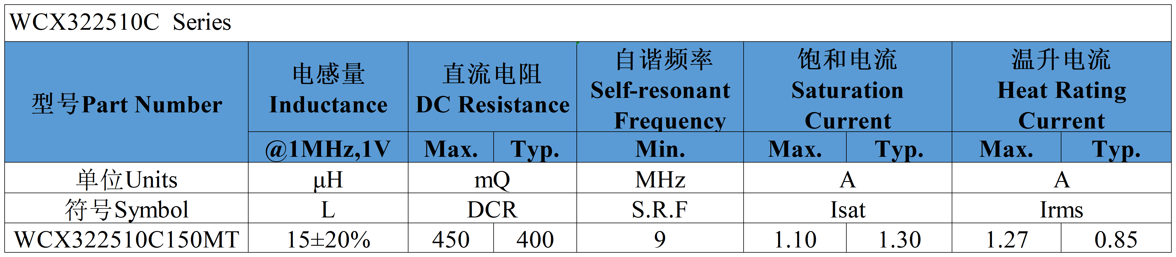 顺络WCX322510C150MT(3.2×2.5×1.0mm)正是针对这一需求精准设计,其核心优势体现在:电感值15μH,可有效抑制纹波电流;饱和电流大于1.1A,充分满足电路需求;直流电阻仅400mΩ,为整机效率留出充足裕量;采用高性能材料二次包覆设计,满足高耐压需求;超薄尺寸仅1.00mm,实现极致空间节省,提升集成度。
