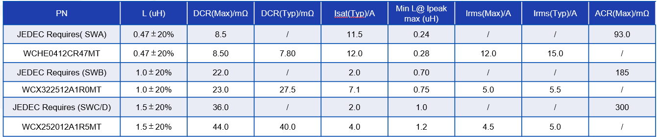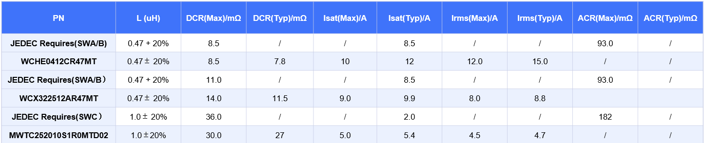 顺络针对Client DDR5 PMIC5120的功率电感推荐: