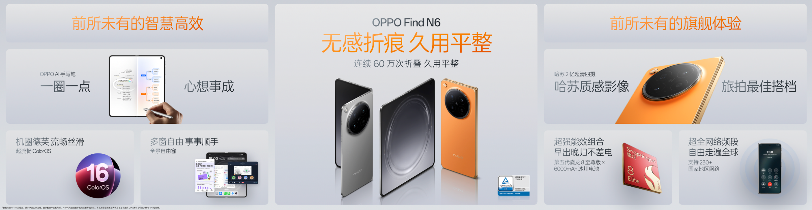 今年3月,OPPO发布的折叠旗舰Find N6,以突破性的平整度表现获得德国莱茵TÜV认证,成为全球首款通过“连续60万次折叠测试久用平整”认证的折叠屏手机。