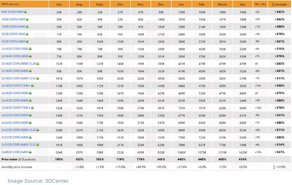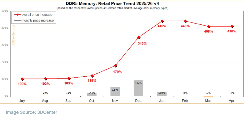 德国DDR5芯片价格反弹至去年7月水平的410%