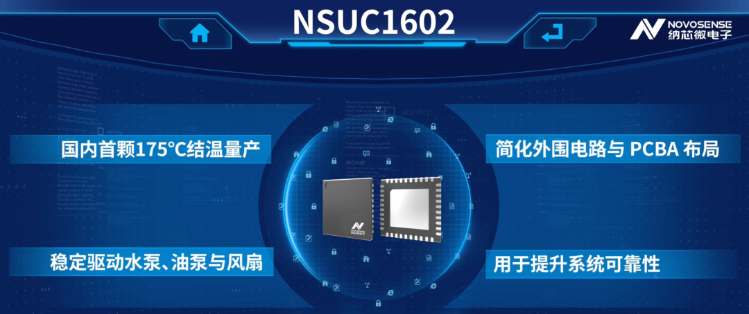 在实操方案选型方面,要做集成度高的电子水泵 / 油泵 / 风扇控制器 → 优先评估 NSUC1602,它的 175℃ 结温 + 最小系统集成,是压缩方案尺寸最直接的抓手;