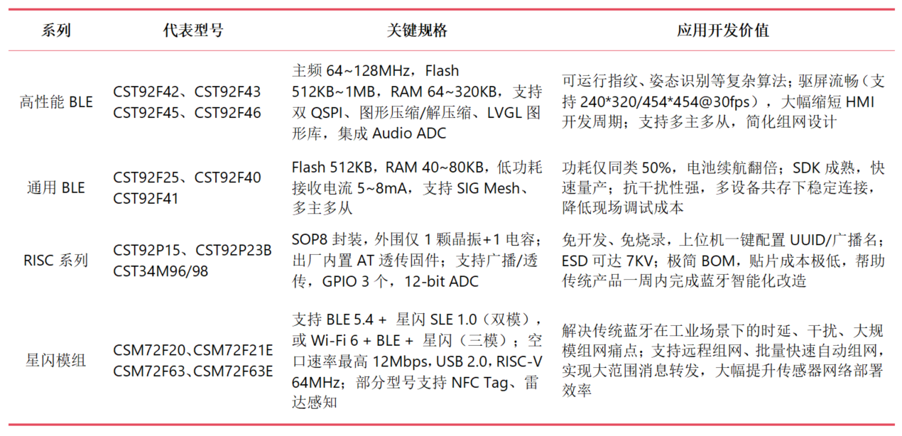 本次大会上,芯海科技展出的蓝牙芯片及模组覆盖了高性能BLE系列、通用BLE系列、RISC系列以及星闪模组,全面满足不同成本、功耗、算力层级的应用需求。