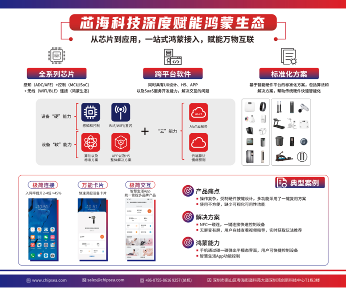 自鸿蒙生态诞生以来,芯海科技始终深度参与鸿蒙智联生态建设,从芯片到应用提供一站式的鸿蒙接入服务,实现从感知和控制到跨平台软件及云端算法的全链路赋能。