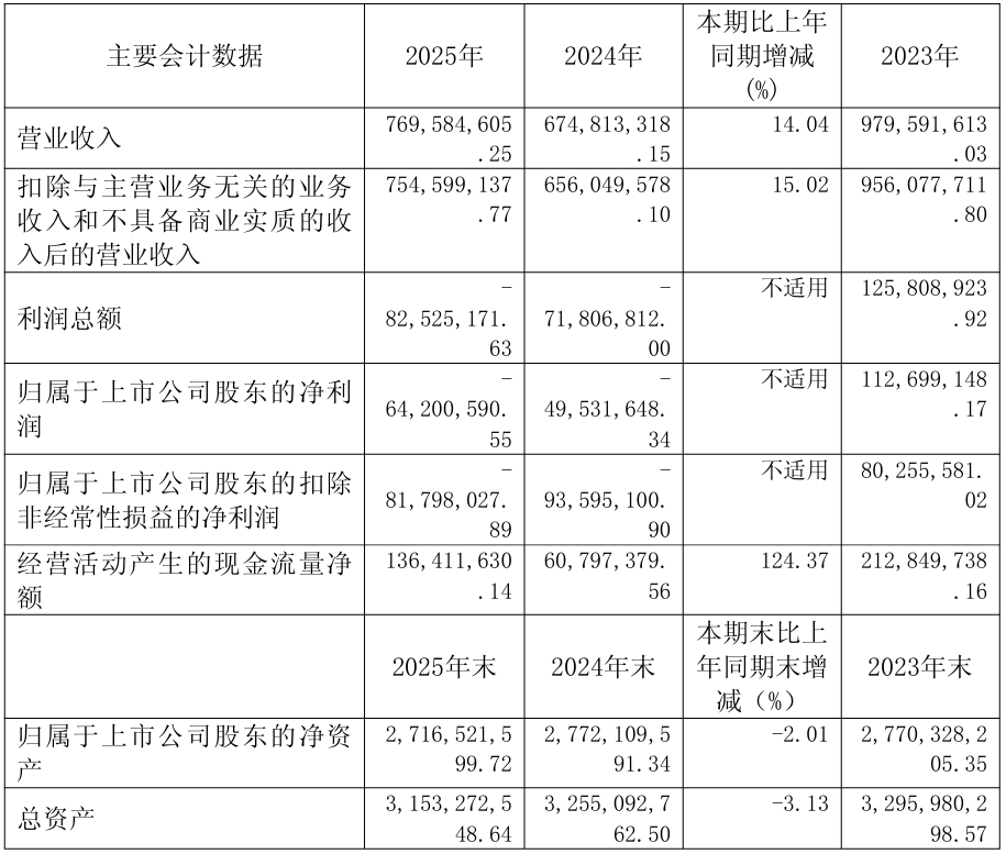 4月24日,上海康鹏科技股份有限公司正式发布2025年年度报告。年报显示,2025年康鹏科技实现营业总收入7.7亿元,同比增长14.04%;归属于上市公司股东的净利润-0.64亿元;归属于上市公司股东的扣除非经常性损益的净利润-0.82亿元。