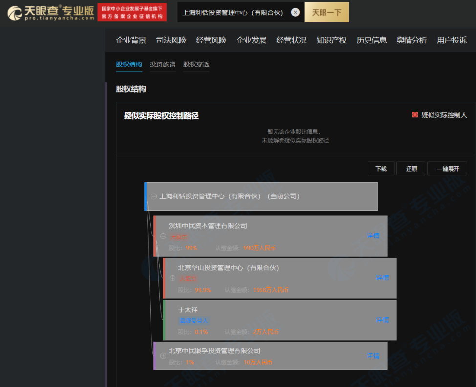 天眼查显示,上海利恬控股股东为北京华山投资管理中心(有限合伙)(以下简称“华山资管”),其是一家大型私募投资公司,由民生银行贸易金融家俱乐部21家核心客户共同出资成立,出资人包括孙春莉、王文银、王永胜等。天眼查进一步显示,华山资管出资人实力颇为雄厚。如王文银为正威控股集团实控人;王永胜为山东泰山钢铁集团有限公司、光阳安泰控股有限公司、济南燕山投资有限公司等多家公司法人。