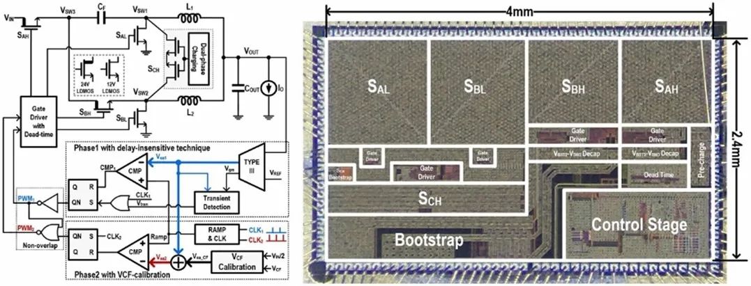 图3 快速大转换比DC-DC转换器电路结构与芯片照片
