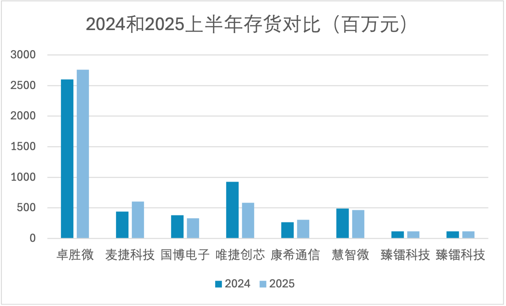 存货方面,部分企业库存仍处于高位。卓胜微存货达27.6亿元,较上年同期增长6.1%,其中大部分为4G中低阶产品,面临一定减值压力。唯捷创芯则主动去库存,存货同比下降36.8%,但现金流继续承压。麦捷科技存货增长37.4%,主要因备货应对客户订单增长。