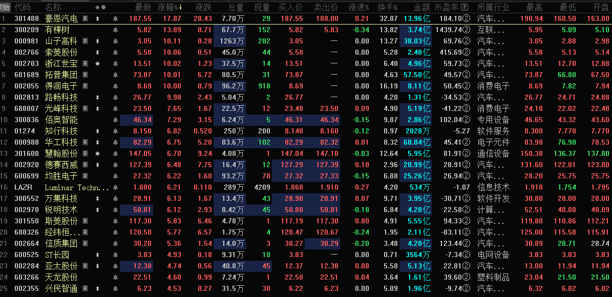 此外,光峰科技、华工科技、慧翰股份、路畅科技、德赛西威、万集科技等个股也均有显著上涨,推动整个智能驾驶概念板块呈现出一片繁荣景象。