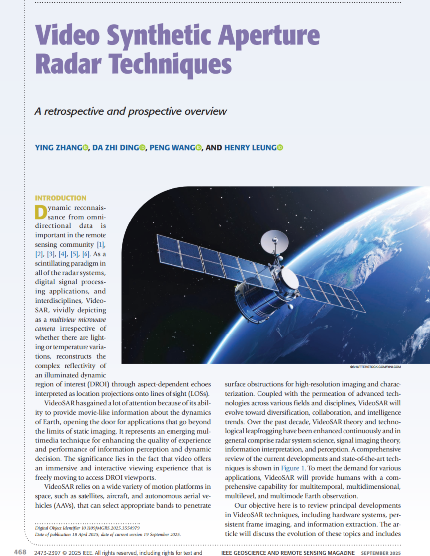 首次!南京理工大学在IEEE GRSM(IF: 16.4)发表视频合成孔径雷达研究成果。