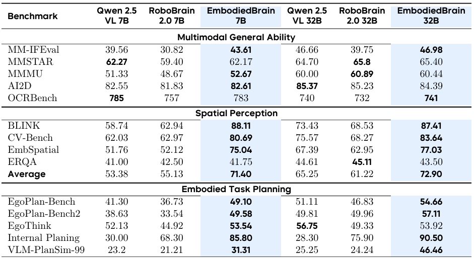 表 1:EmbodiedBrain Benchmark测试对比数据