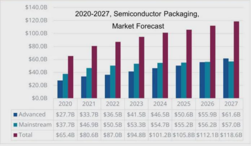 Gartner数据显示,2025年全球集成电路封测市场规模预计达890亿美元,同比增长8.5%,2025-2029年CAGR 10%;AI、汽车电子、数据中心为三大增量引擎,先进封装占比提升但贸易摩擦与材料依赖进口形成短期扰动。根据Yole测算,2025年先进封装市场规模将达569亿美元,同比增长9.6%,占比将首次超过传统封装,达51%,标志着全球封装技术正式进入先进封装主导时代。