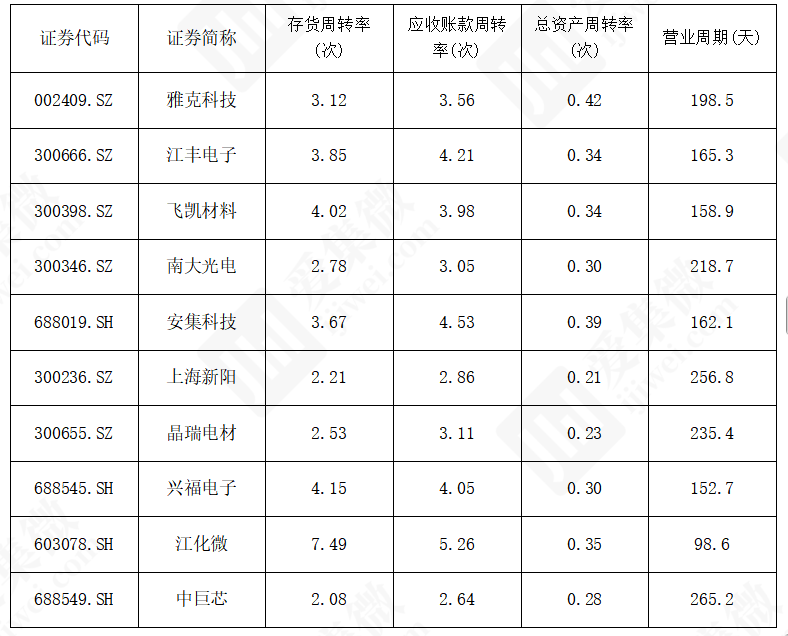 *2025年前三季度国内半导体电子化学品行业主要上市公司营运能力指标