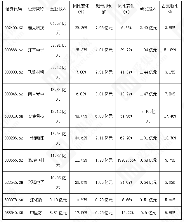 在中国半导体电子化学品上市公司数据方面,《报告》以雅克科技、江丰电子、飞凯材料、南大光电、安集科技、上海新阳、晶瑞电材、兴福电子、江化微、中巨芯这10家上市公司为样本,构建了多方位对标体系。