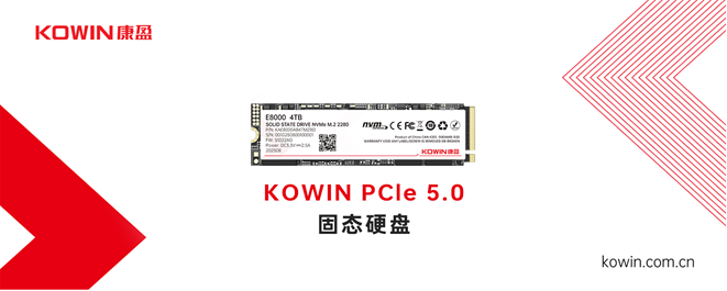 在高速存储方面,KOWIN PCIe 5.0固态硬盘支持NVMe 2.0协议,顺序读写速度最高可达14000MB/s和13000MB/s,并搭载高速缓存与端到端数据保护机制,适用于工作站、高端PC及AI算力场景,为高性能计算提供稳定可靠的存储支持。