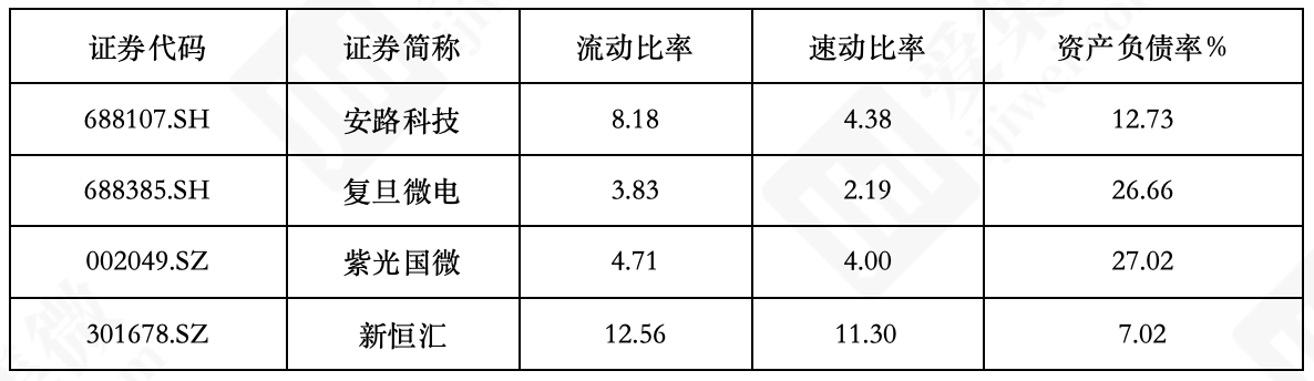 整体来看,四家企业偿债能力指标的分化,本质是 “业务属性 + 成长阶段 + 财务策略” 的综合结果:新恒汇依托轻资产、低负债实现 “极致安全”;安路科技因成长期风险控制需求保持 “低杠杆”;紫光国微与复旦微电则在成熟阶段采用 “适度杠杆” 平衡扩张与稳健。这种差异全面反映半导体行业不同发展阶段企业的财务风险偏好 —— 成长期企业优先控制债务风险,成熟企业则适度利用杠杆提升资本效率,且四家企业均通过合理资本结构确保偿债安全,为研发投入与业务发展提供稳定财务基础。