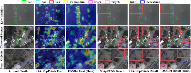 如图6所示,在小目标、低能见度或背景杂乱等典型复杂场景中,OSSDet能够显著增强网络对目标区域的聚焦能力,抑制无关背景噪声,从而减少误检与漏检,提升复杂地表环境中目标检测的准确性与鲁棒性。