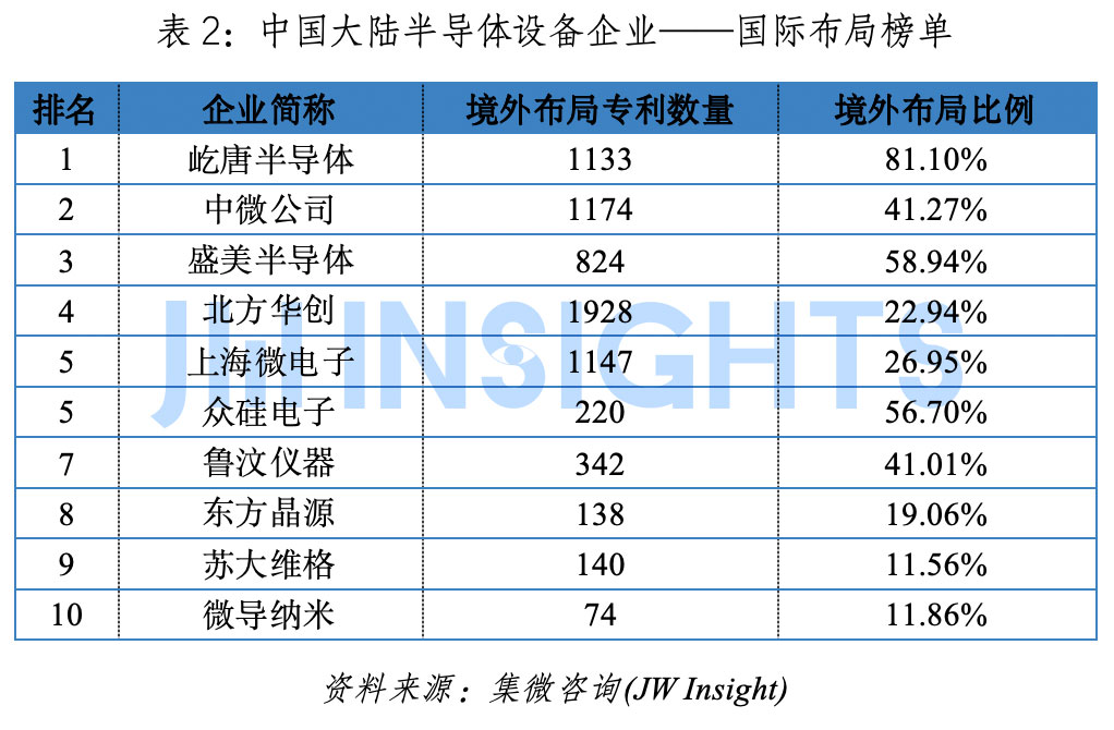 企业在境外获得专利保护可为其产品进入境外市场保驾护航,能够提升产品的市场地位和竞争优势,因此,境外专利布局对企业参与全球市场竞争与拿到国际市场话语权具有重大意义。爱集微知识产权咨询针对境外专利布局的统计数据,发布了中国大陆半导体设备领域企业国际布局榜单TOP10。