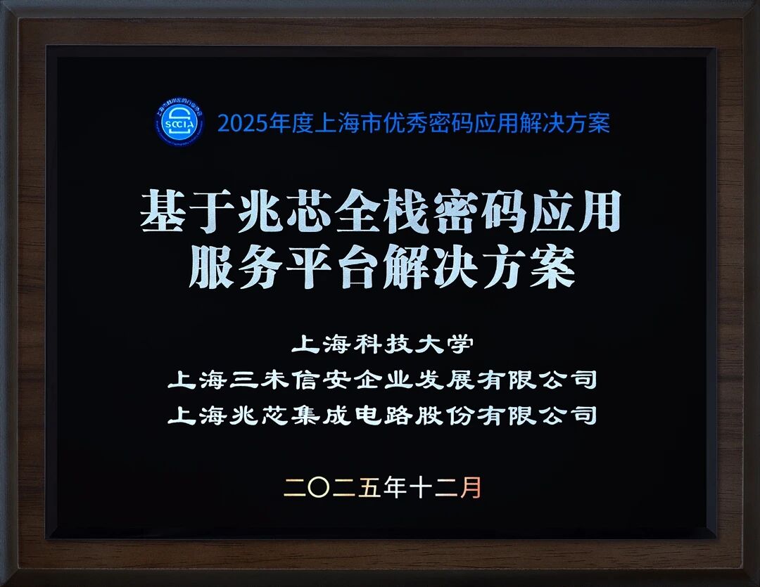 近日,由上海市密码管理局指导、上海市商用密码行业协会组织开展的2025年度上海市优秀密码应用解决方案评选结果正式揭晓。兆芯联合上海科技大学、三未信安科技股份有限公司(简称“三未信安”)申报的《基于兆芯全栈密码应用服务平台解决方案》凭借自主安全技术创新、全栈密码服务构建及行业落地实效的综合优势成功入选,荣获“2025年度上海市优秀密码应用解决方案”称号。