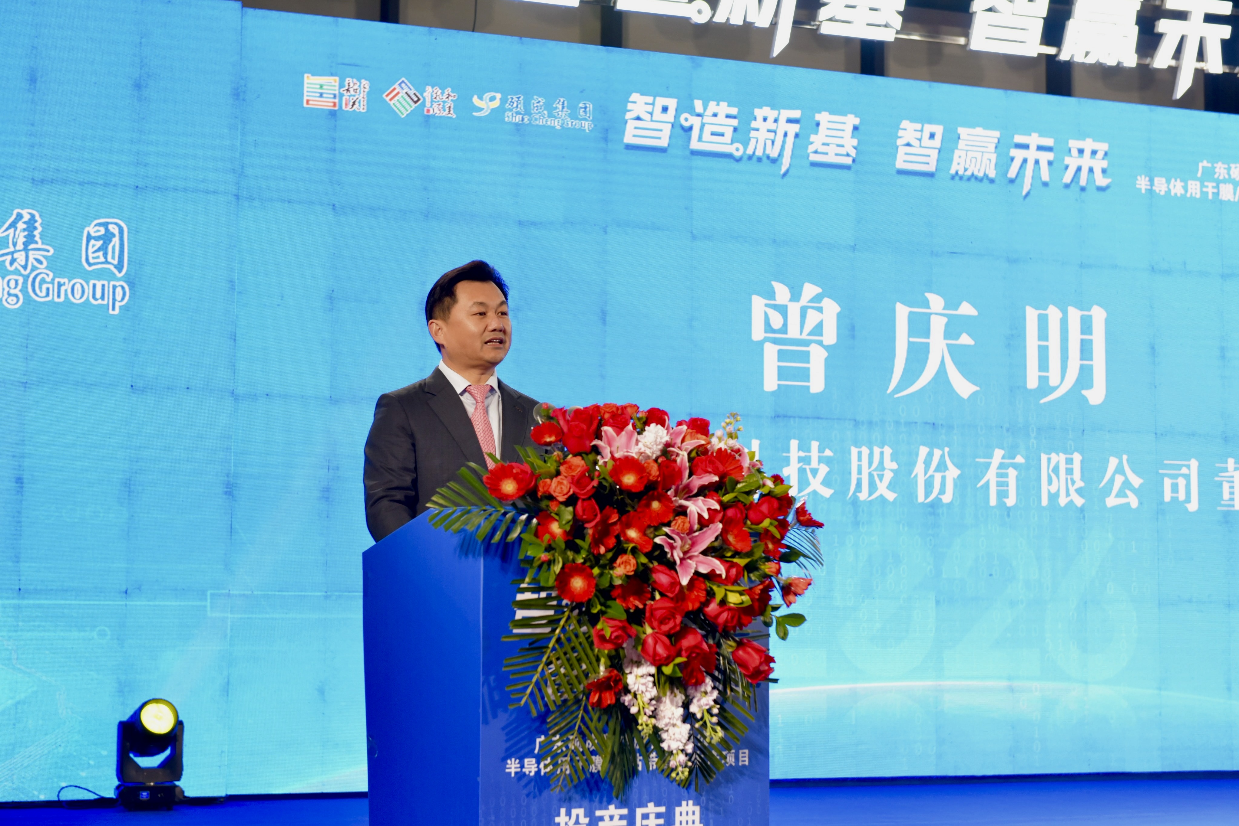 庆典仪式上,广东硕成科技股份有限公司董事长曾庆明代表董事会和全体员工向与会嘉宾的到来表示热烈欢迎。他在致辞中分享了项目筹建的艰辛与坚守——半导体材料技术壁垒高、研发周期长、市场验证苛刻,项目筹建过程中还遭遇溶洞地质、雨季施工、进口设备交期滞后等多重挑战,“半导体材料技术壁垒高、研发周期长,市场验证苛刻,但我们仍然坚持投入,努力建设起一座AI绿色工厂。它不仅仅是生产基地,还是硕成核心竞争力的新源泉,迈向高端的新起点。‘硕成人’坚信路虽远,行则将至;事虽难,做则必成!”