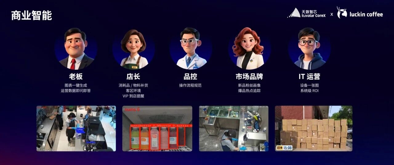 在商业智能领域,天数智芯与瑞幸咖啡达成战略合作。迄今为止,天数智芯的AI算力已在瑞幸咖啡全国范围内的数千家门店部署。不仅能够处理分析实时视频流,也可以深度挖掘数据价值,盘活数据资产,释放增量空间。