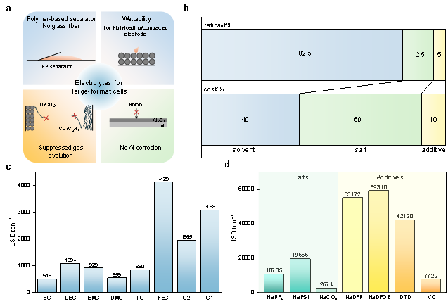 图3. 大尺寸电池的电解液设计原则与成本分析