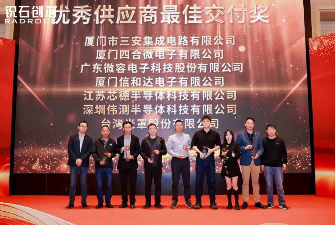 微容科技于2025年荣获锐石创芯颁发的“优秀供应商 最佳交付奖”。该奖项旨在表彰在综合实力、供应稳定性与交付效率等方面表现杰出的合作伙伴。微容科技通过优化运营流程与跨部门协作,建立起高效稳健的订单响应与交付体系。