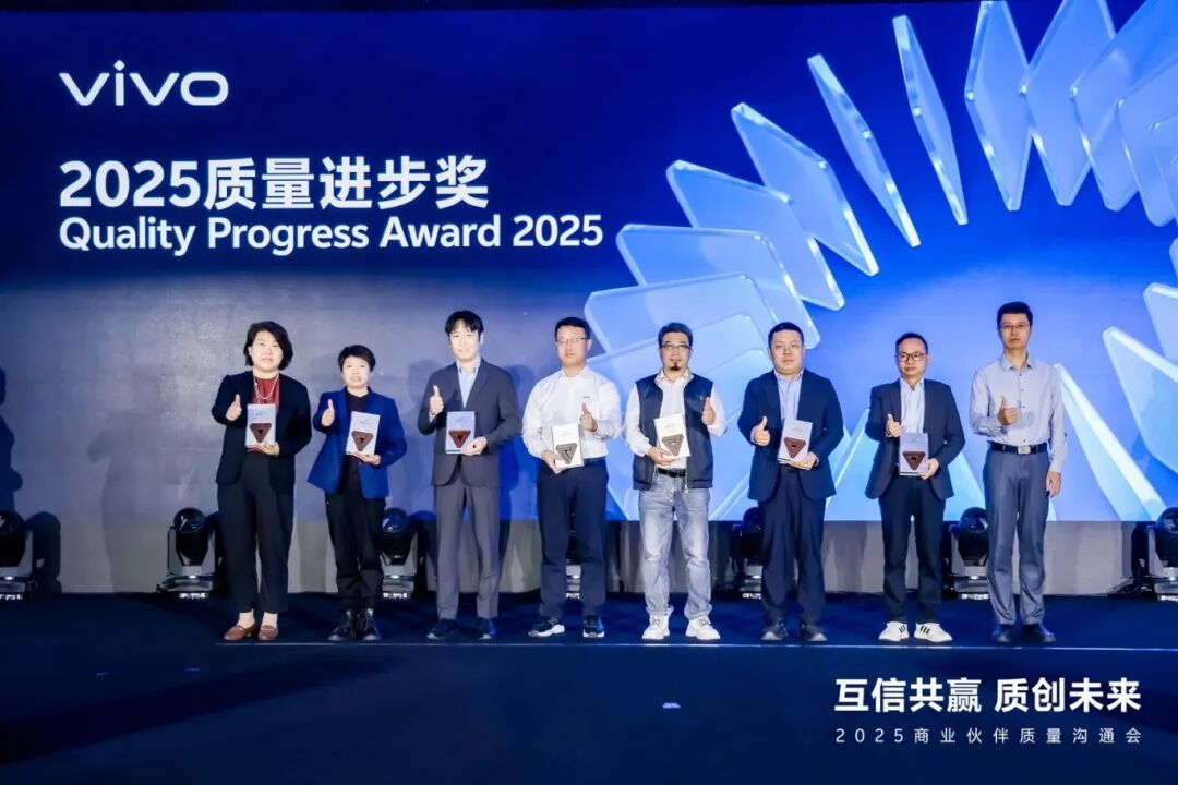 在质量领域,微容科技在2025年荣获vivo颁发的“质量进步奖”。该奖项旨在鼓励和认可在产品质量与生产流程中实现显著提升的供应商。vivo对微容科技在质量管理方面的持续进步给予了高度认可,尤其在过往合作中始终保持出色的产品质量记录。微容一直致力于提升产品品质,不断优化生产工艺,在质量体系管理、过程控制与产品检验等方面实施严格管控,以全面满足客户的需求。