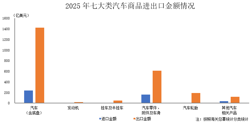 2025年全国汽车商品出口金额2424.6亿美元,同比增长14.2%