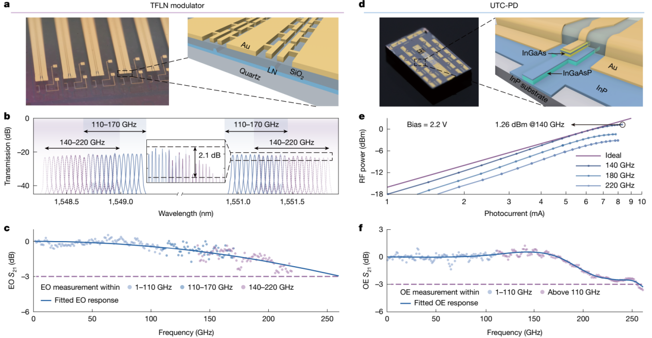 图2 超宽带电光-光电转换集成光子芯片关键性能表征