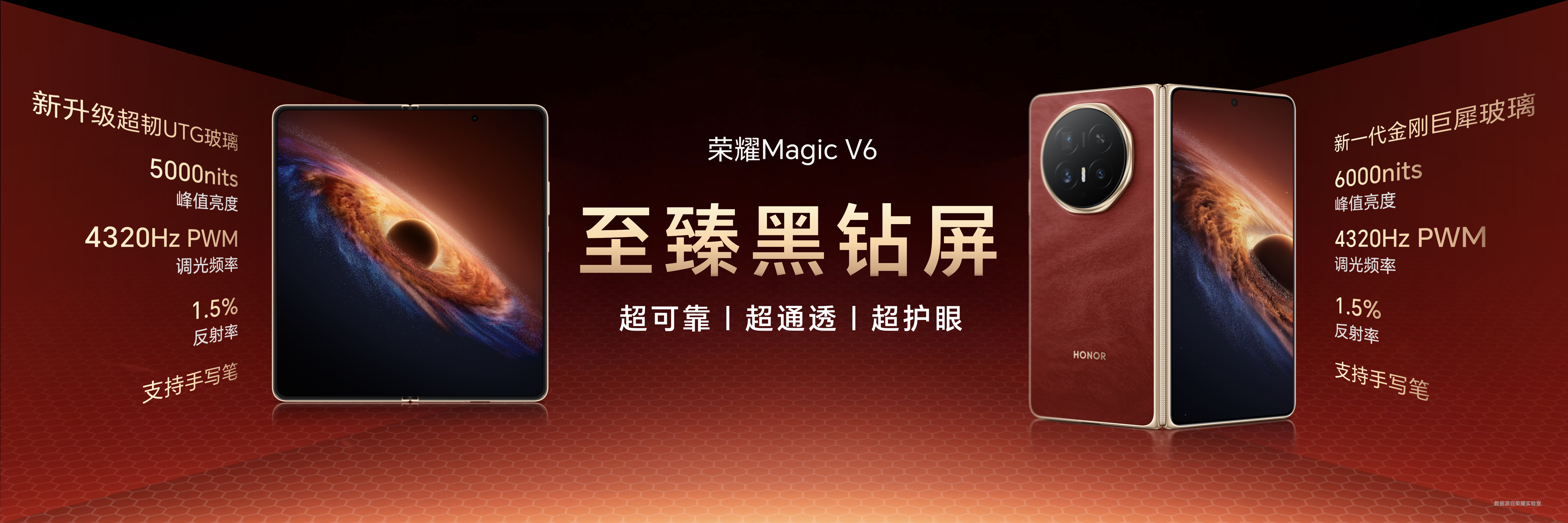 屏幕作为折叠屏手机最重要的元件之一,却面临普遍的可靠性顾虑。对此,荣耀Magic V6首发搭载自研至臻黑钻屏,在实现超强护眼的同时,更兼具黑钻般极致可靠与通透。用顶级好屏的“屏实力”,通过七项国际顶级权威认证测试。