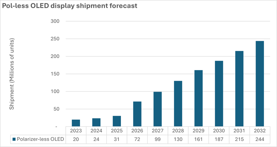 机构:无偏光片OLED面板将快速增长,2032年出货量或达2.44亿片